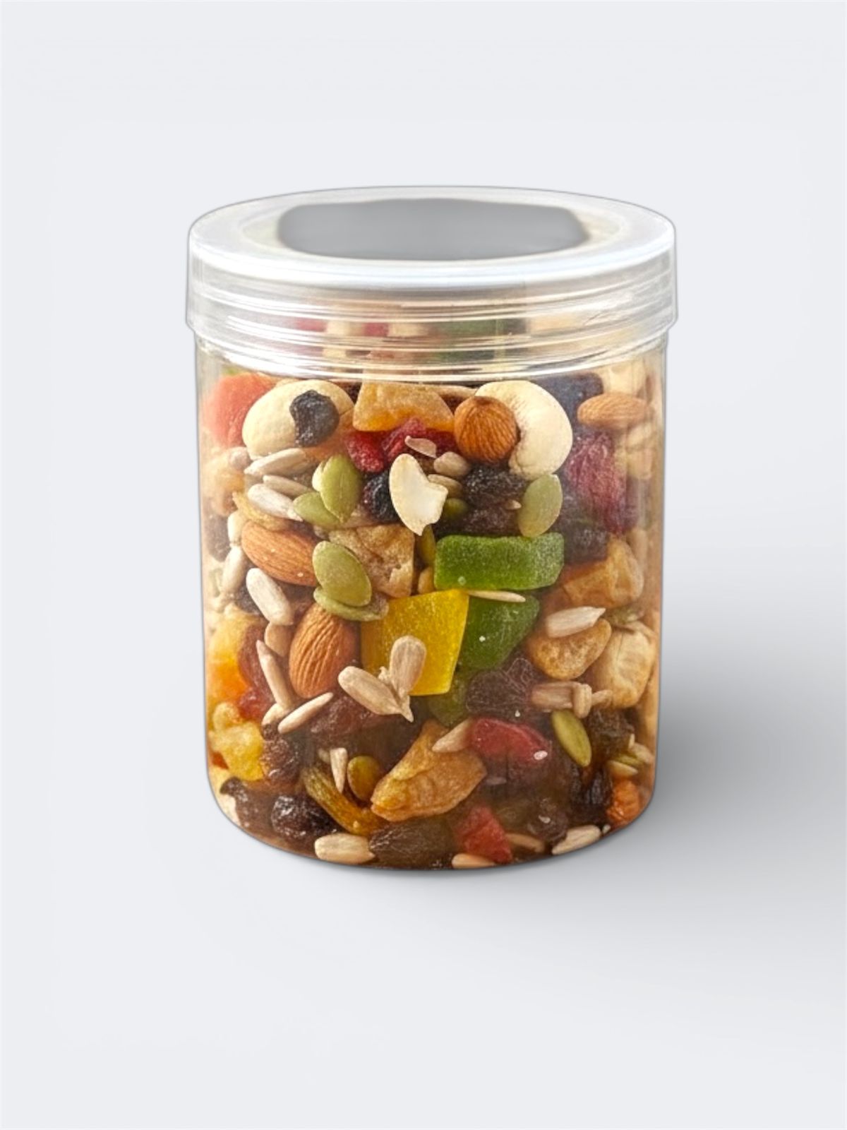 Ingredients: Assorted premium dry fruits, include almonds, cashews, raisins, seeds, pistachios, berries, etc